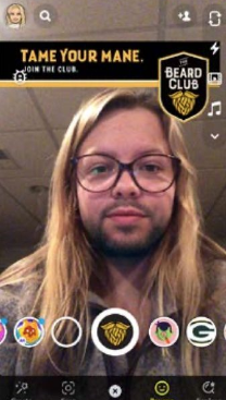 This augmented reality filter was created on Lens Studio by Snapchat and is fully functional in the app. It allows users to wear the beard and share the brand with their friends.